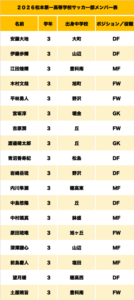 出身中学校:松島中学校 (出身クラブ:フォルツァ松本FC)